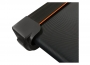 Тренировочный компьютер оснащен голубым дисплеем диагональю 7 дюймов (17.8 см.) с отображением программных профилей. В число самих программ входят 22 режима, направленных на решение самого широкого спектра задач – от развития силы и выносливости до снижения веса и улучшения сердечно-сосудистой системы. Помимо предустановленных программ, можно воспользоваться самостоятельно регулируемым ручным режимом, а также создать собственную программу в одном из 3-ех пользовательских режимов. На передней части консоли расположена подставка под планшет или смартфон. К другим особенностям дорожки относятся гидравлическая система складывания, которая существенно облегчает складывание дорожки, а при раскладывании обеспечивает медленное опускание полотна в последней фазе, гарантируя легкость и безопасность. В виду того, что дорожка тяжелая, перемещение дорожки происходит не на двух, как обычно, роликах, а на четырех - при этом тренажер не нужно наклонять.